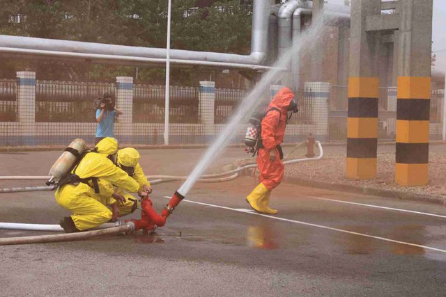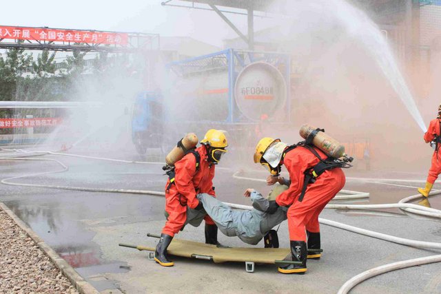 6月21日上午,9時40分,江山股份氯氣站一輛裝有20噸液氯的槽罐車在接卸液氯作業(yè)時,管道“發(fā)生”氯氣泄漏,氯氣向周邊擴散,影響了附近企業(yè)和居民的人身安全……這是南通市氯氣泄漏事故應急綜合演練中的一幕。 由市政府主辦、江山股份承辦的南通市氯氣泄漏事故應急綜合演練是2012年南通市安全生產(chǎn)月的“重頭戲”, 此次應急演練重在提高政府、職能部門、企業(yè)應對危險化學品事故的應急處置能力,最大限度減少因安全生產(chǎn)事故給企業(yè)和人民群眾造成的財產(chǎn)損失和人員傷亡。 由于氯氣是具有刺激性氣味的有毒氣體,可以溶解于水,因此應急處理主要是通過噴灑形成水霧的方法來降低氯氣濃度,控制擴散范圍?,F(xiàn)場用紅色煙霧代替黃綠色氯氣。演練中,市安監(jiān)、公安、消防、環(huán)保、質監(jiān)、衛(wèi)生、氣象等部門積極聯(lián)動,各司其職,氣象部門提供風力、溫度、濕度等實時數(shù)據(jù),環(huán)保部門負責空氣中氯氣含量檢測,公安負責交通管制和疏散救援……僅用了不到40分鐘即圓滿完成了泄漏源堵漏和周邊企業(yè)及居民的疏散工作,充分展示并檢驗了市政府、職能部門及企業(yè)應對危險化學品事故的應急處置能力。 副市長徐輝擔任現(xiàn)場總指揮,并對演練做了綜合點評。江山股份董事長李大軍觀摩現(xiàn)場演練,總經(jīng)理薛健任現(xiàn)場副指揮。