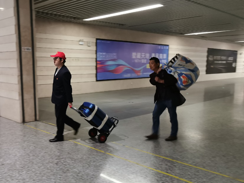 活動中,黨員同志共14人分別位于客運東站地下公交車上下客點、出租車上下客點、地上扶梯中轉(zhuǎn)點以及志愿服務崗臺咨詢點做方向指引、秩序維持、搬運行李等,遇到不知如何到達目的地的乘客,黨員志愿者熱心幫忙查詢路線、到達方式,并一路帶領將其護送至售票處、公交站臺。