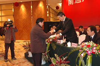 與會(huì)代表濟(jì)濟(jì)一堂 獲得效益貢獻(xiàn)獎(jiǎng)一等獎(jiǎng)先進(jìn)集體(左起:碳素、江山、通科、石化) 企業(yè)代表遞交安全生產(chǎn)責(zé)任狀和黨風(fēng)廉政建設(shè)責(zé)任書 |