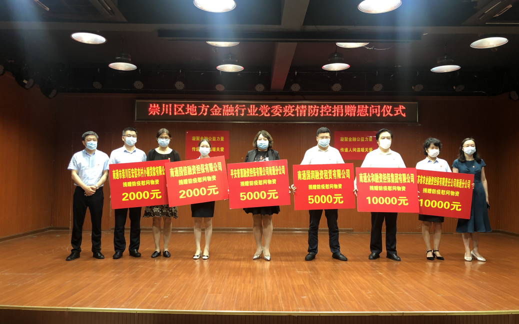 面對疫情,產(chǎn)控集團投資企業(yè)紛紛用各自的實際行動,落實好國有企業(yè)的政治責(zé)任、經(jīng)濟責(zé)任和社會責(zé)任。南通眾和擔(dān)保向抗疫一線社區(qū)捐贈10000元防疫物資,支持區(qū)域內(nèi)街道、社區(qū)的防疫工作開展。南通國信擔(dān)保向社區(qū)一線捐贈2000元防疫物資,支持疫情防控工作。揚子碳素向天生港鎮(zhèn)街道捐贈了包括防護服、護目鏡、帳篷、測溫槍、礦泉水、方便面等一批防疫物資,用于疫情防控和便民服務(wù)工作,為疫情防控奉獻(xiàn)一份愛心。國融公司織密戰(zhàn)“疫”紅色“防控網(wǎng)”,黨員干部們深入門店,走進商戶,做租戶的“宣傳員”“勸導(dǎo)員”“排查員”。擴大戰(zhàn)“疫”宣傳“覆蓋面”,利用公眾號、官網(wǎng)、宣傳手冊等方式,把疫情防控科普知識等內(nèi)容送到租戶手上,用實際行動筑牢安全防線,踐行國企責(zé)任擔(dān)當(dāng)。